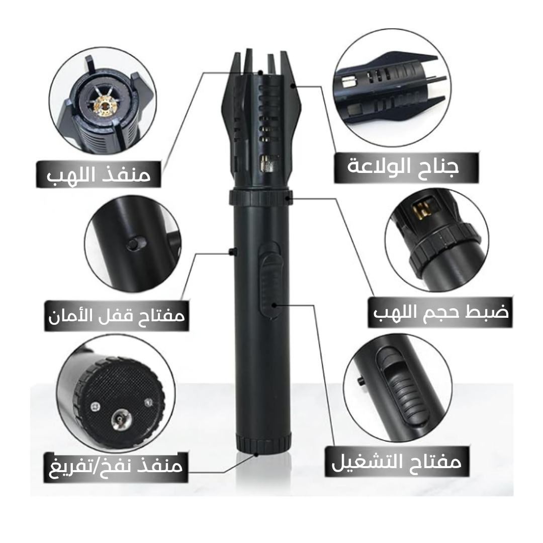 تشعل الحطب والفحم والشموع، وتساعدك في إشعال النار للطهي أو التدفئة. مناسبة للرحلات، الكشتات، والأعمال اليدوية البسيطة