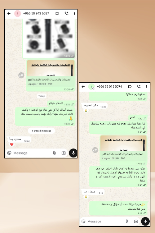 في حال واجهت أي عيب في الولاعة أو أثناء استخدامها، تواصل مع فريق الدعم عبر رقم الواتساب ( 648877026 212+ )وسنقوم باستبدالها لك أو إرجاع كامل المبلغ.