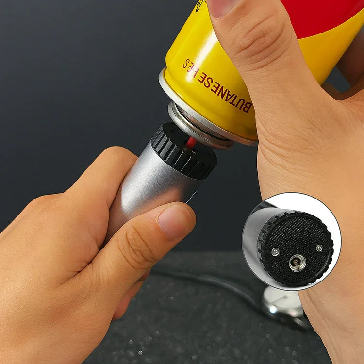 6. عند الحاجة لإعادة التعبئة، اقلِب الولاعة واملأها بغاز البوتان عبر الفوهة السفلية. اتركها لبضع دقائق قبل إعادة التشغيل.